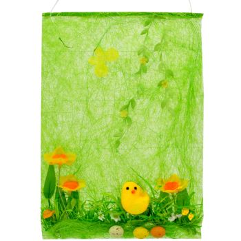 Sisalová dekorácia na zavesenie spolu s kvietkami a kuriatkom.