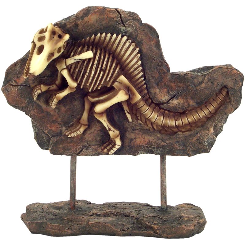Kostra dinosaura v kameni na podstavci. Darček vhodný pre tých,čo sa zaujímajú o tieto prehistorické tvory.