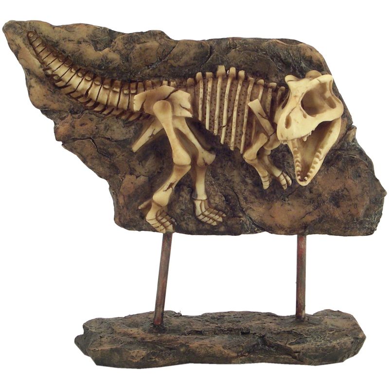 Kostra dinosaura v kameni na podstavci. Darček vhodný pre tých,čo sa zaujímajú o tieto prehistorické tvory.