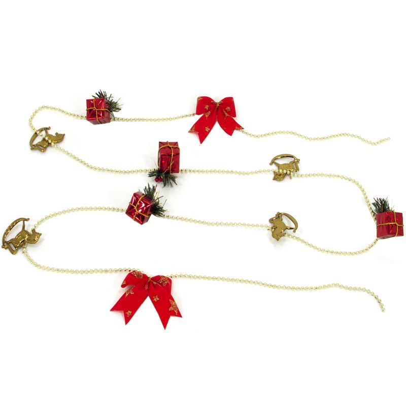Dekorácia v tvare girlandy s ozdobami je vhodná na celkové dozdobenie vetvičiek vianočného stromčeka.