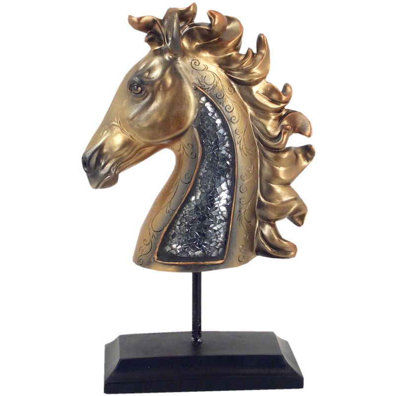 Interiérová dekorácia v podobe hlavy koňa na podstavci.