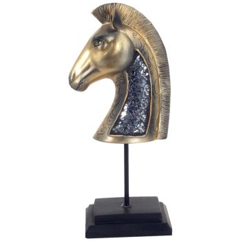 Interiérová dekorácia v podobe hlavy koňa na podstavci.