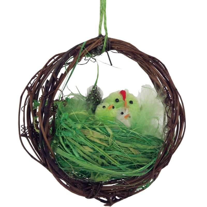 Kuriatka so sliepkou v sisalovom hniezde a prútenom venčeku so šnúrkou na zavesenie.