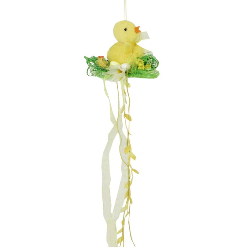 Kuriatko na sisale obohatené stužkami so šnúrkou na zavesenie.