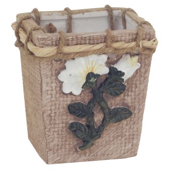 Keramický kvetináčik s vonkajšej strany imitácia tkaniny(juta).