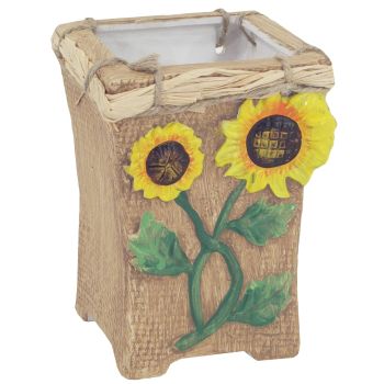 Keramický kvetináčik s vonkajšej strany imitácia tkaniny(juta).