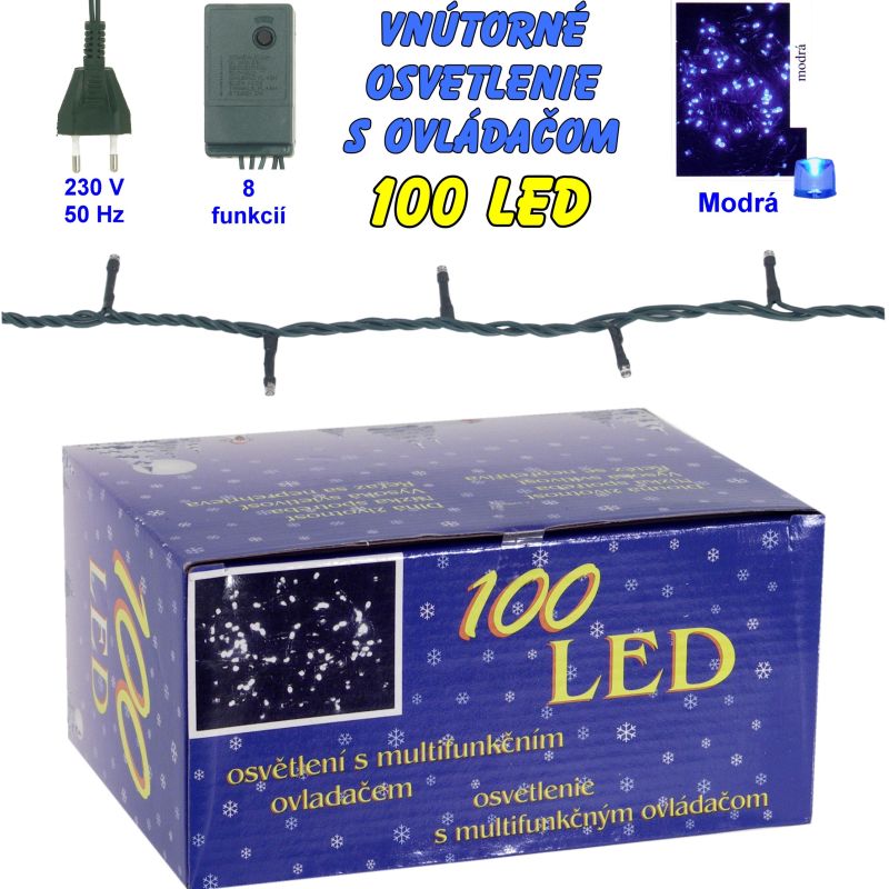 Diódové osvetlenie s jasným svetlom sa vyznačuje nízkou spotrebou el.energie a dlhej životnosti.Napájanie reťaze je priamo z el.zásuvky a jeho použitie je výlučne v interiéroch.Osvetlenie je s ôsmimi blikajúcimi funkciami.