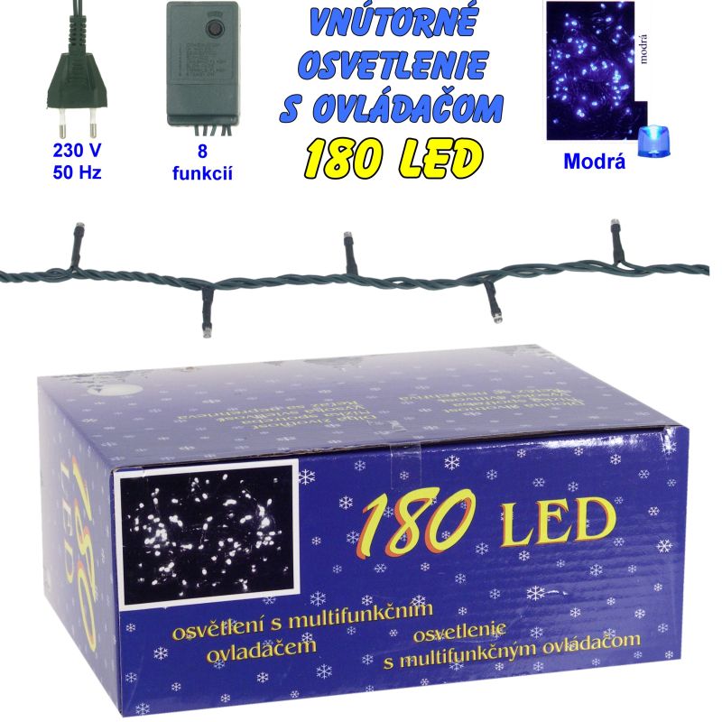 Diódové osvetlenie s jasným svetlom sa vyznačuje nízkou spotrebou el.energie a dlhej životnosti.Napájanie reťaze je priamo z el.zásuvky a jeho použitie je výlučne v interiéroch.Osvetlenie je s ôsmimi blikajúcimi funkciami.