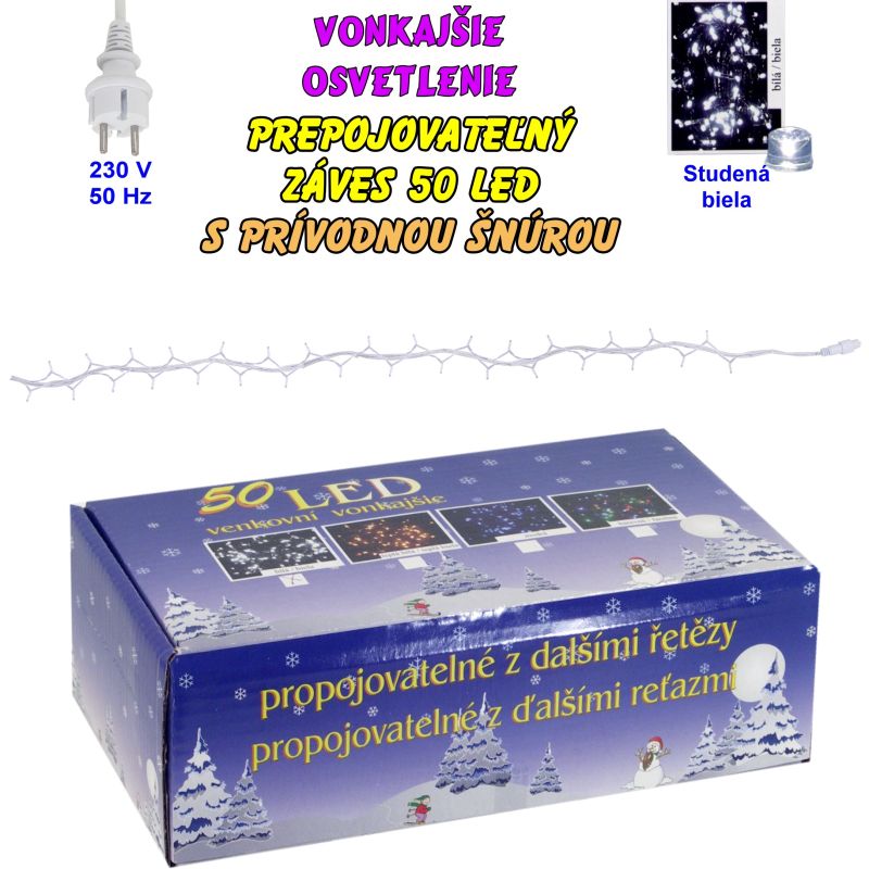 Svetlá pozostávajúci z 50 LED diód.Výhodou je možnosť pripojiť viacero závesov(reťazí) do jedného celku a tým vytvoriť dlhú sveteľnú reťaz.Balenie obsahuje aj prívodný kábel na 230 Voltov.K vytvoreniu dlhšej reťaze už potom stačí objednať len prepojovací záves.