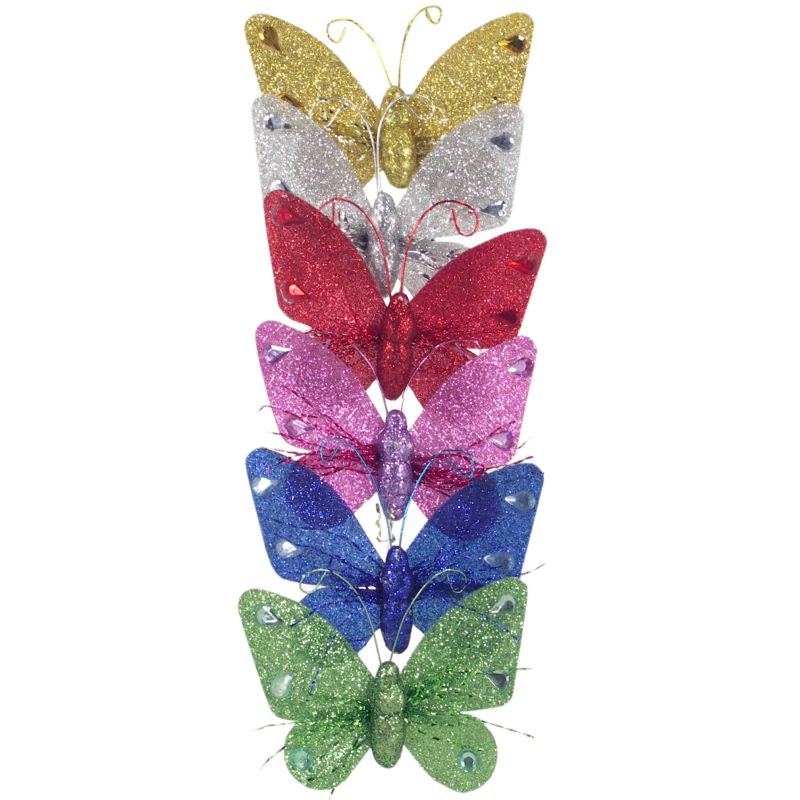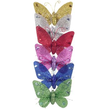 Farebné motýle so štipcom na dozdobenie vianočného stromčeka alebo vetvičky.