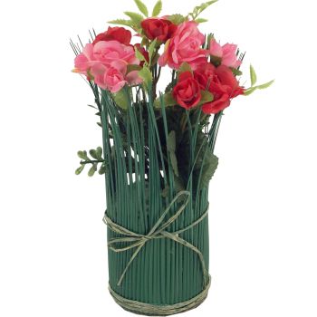 Umelý kvet zavinutý v umelej tráve je vhodná dekorácia na okennú parapetu,stôl,poličku a podobne.