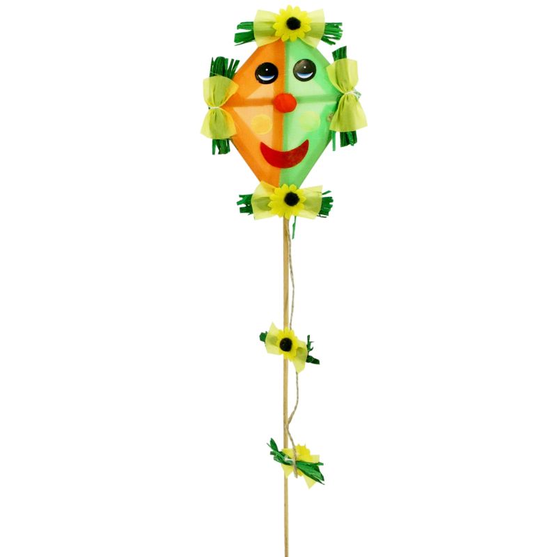 Látková dekorácia v tvare šarkana vo farebnom prevedení určená k zápichom v jesennom období.