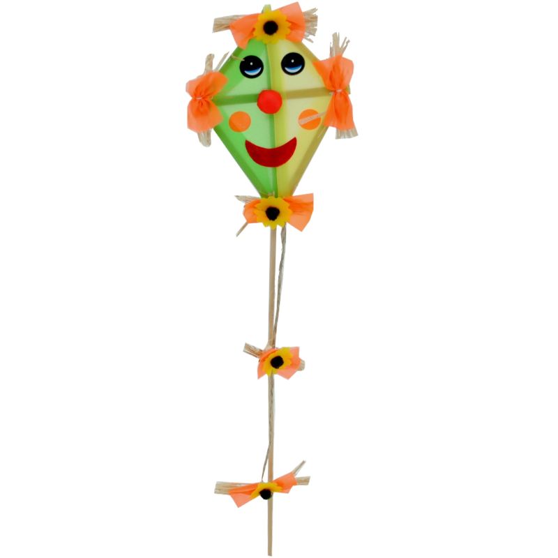 Látková dekorácia v tvare šarkana vo farebnom prevedení určená k zápichom v jesennom období.