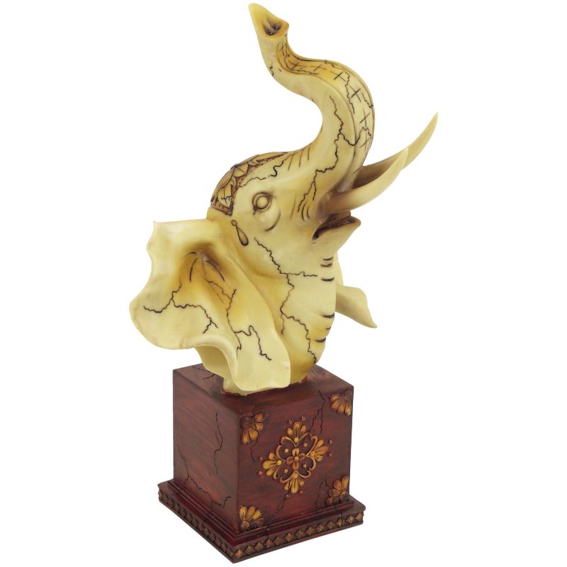 Soška slonej hlavy na podstavci,pekná interiérová dekorácia vhodná na poličku alebo do vitríny,poprípade ako pekný darček symbolizujúci šťastie.