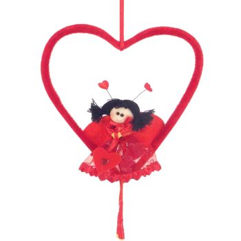 Látkové srdiečko so šnúrkou na zavesenie s látkovým anjelom vo vnútri srdiečka.