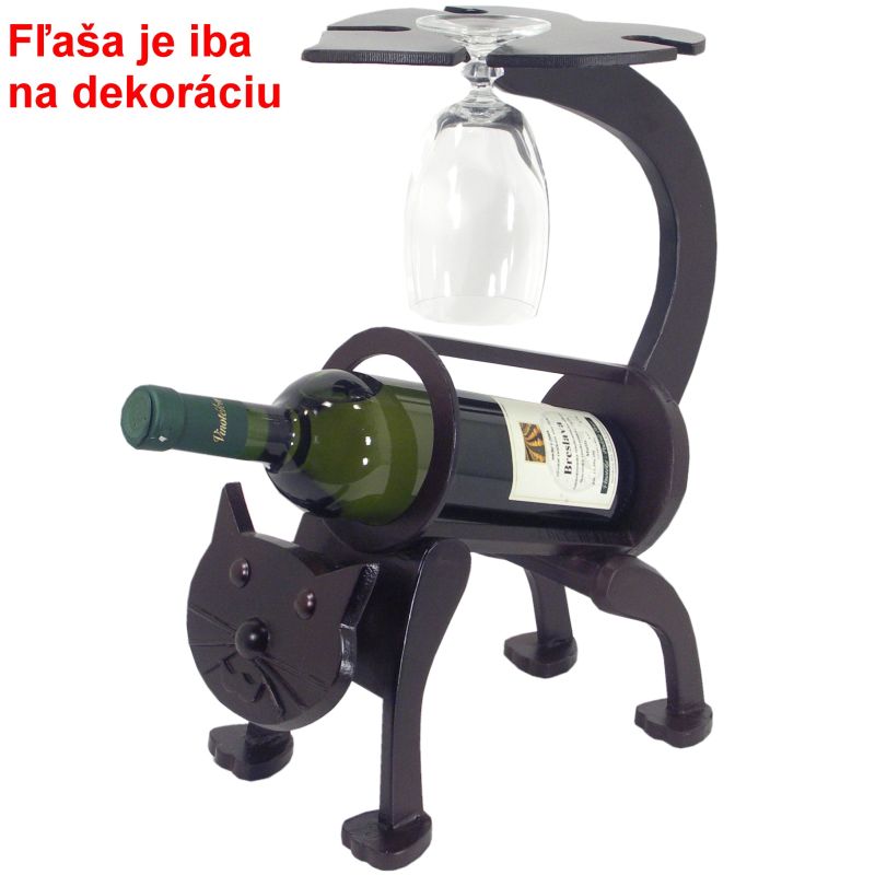 Drevený stojan na fľašu a štyri poháre so stopkou. Výborný dekoračný doplnok do interiéru pre milovníkov dobrého vína.