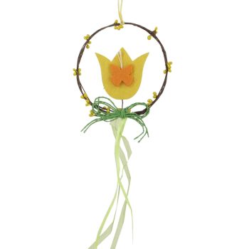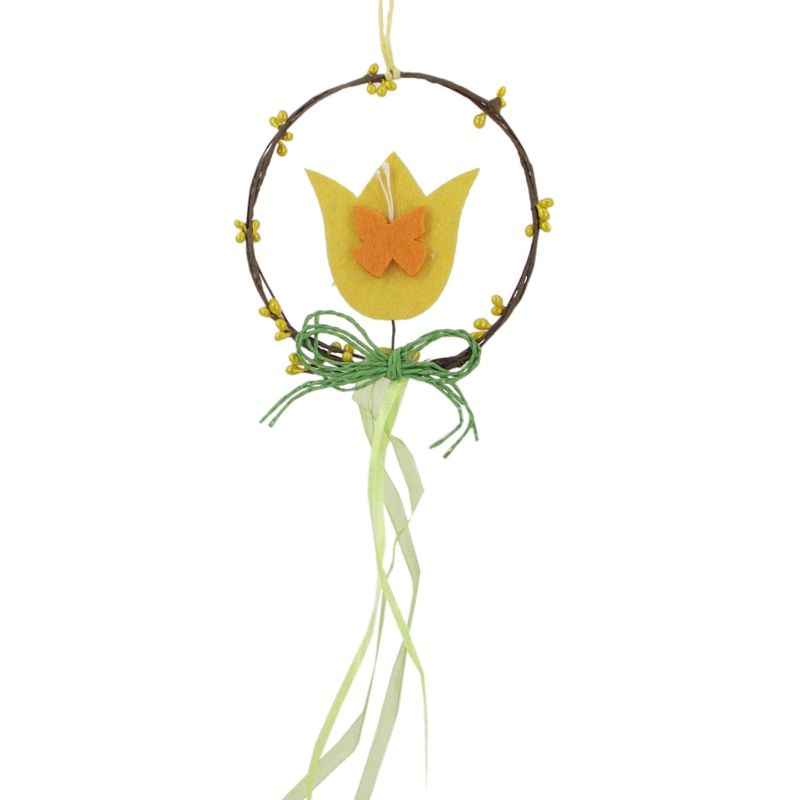 Filcový tulipán vo venčeku so šnúrkou na zavesenie.