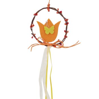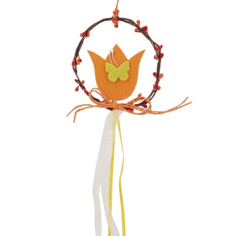 Filcový tulipán vo venčeku so šnúrkou na zavesenie.