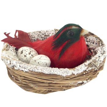 Vtáča z peria v hniezde na dekorovanie interiéru.